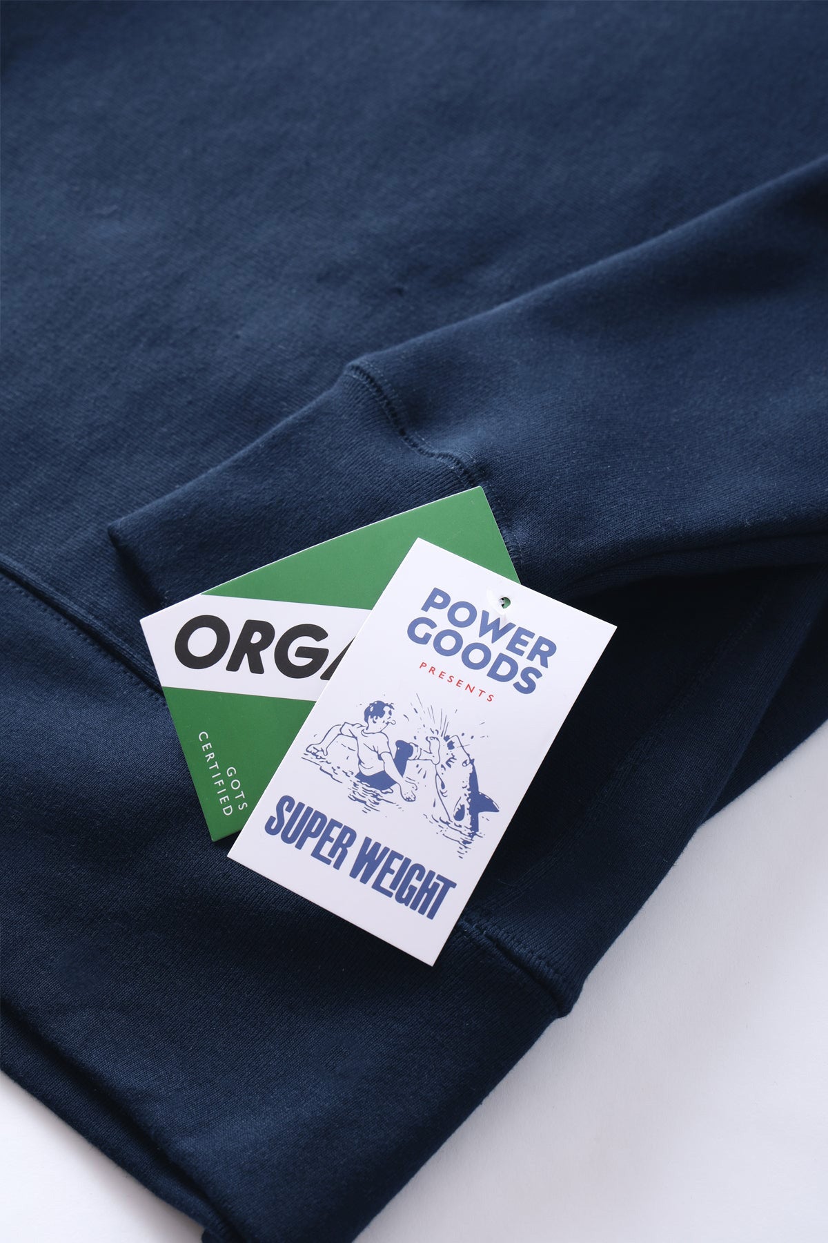 Super heavyweight crewneck by Power Goods, Organic, 16oz Heavyweight, GOTS certified, side ribbing, 100% cotton brushed fleece, elastic cuffs and waistband